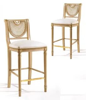 Барный стул Vintage French Nailhead Cane Back Кремовый Лен (IMR-381194) в Москве - купить в интернет-магазине FURNIFY