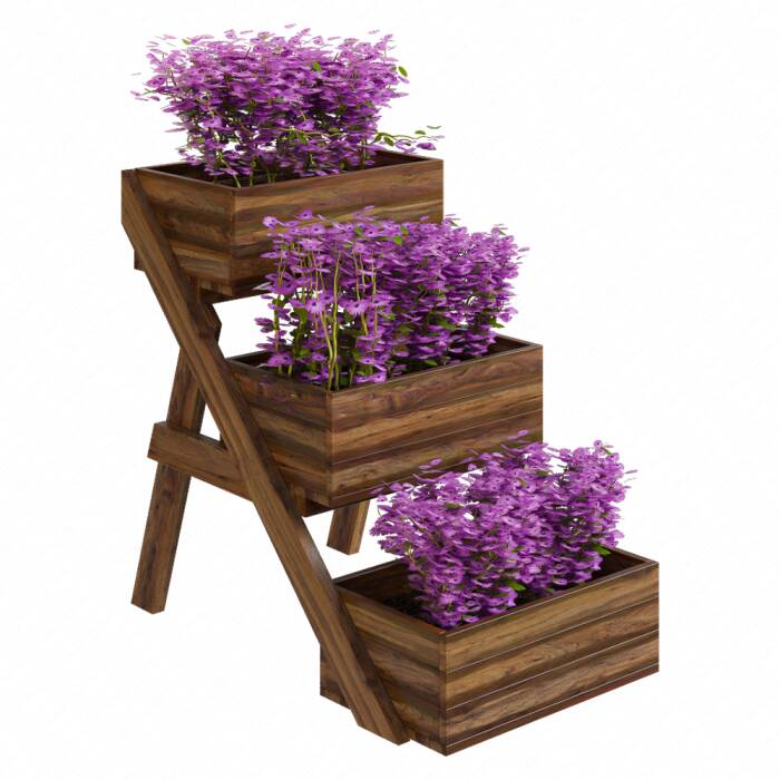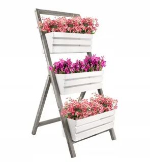 DREWNIANY KWIETNIK BRĄZOWY STOJAK NA 3 SKRZYNKI - 8475673432 - oficjalne archiwum Allegro