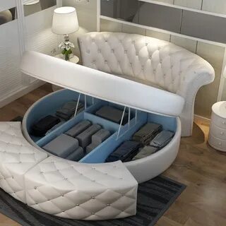 кожаная кровать Круглая кровать двуспальная кровать брак кровать Принцесса кровать современный минималистский многофункциональный европейский стиль пара кожаная кровать расположена мягкая кровать According to Reese