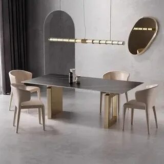 Роскошный набор из каменной плиты обеденный стол 4 стула металлический титановый - купить