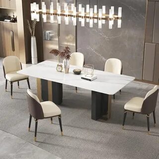 Обеденный стол из глянцевой каменной плиты прямоугольный светлый роскошный мраморный обеденный стол и стулья