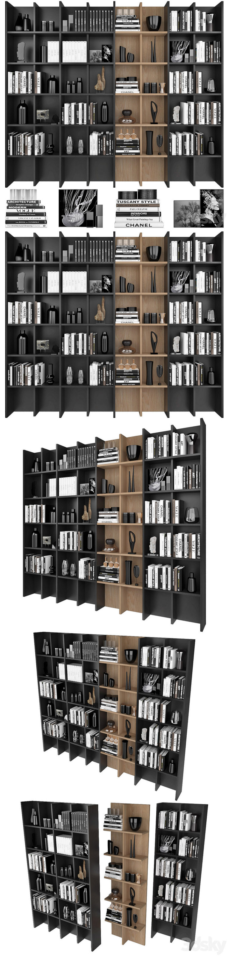 3ddd.ruДоступна для скачивания, Платформа: 3dsMax 2011 + fbx, Рендер: Vray+Corona, Форма: Прямоугольник, Стиль: Современный, Материалы: Дерево, Цвета: Черный, Коричневый, Оранжевый. стеллаж, шкаф, набор, декор, книжный, стенд, витрина, полки, минимализм, Furniture Composition | 313 | Шкаф, Мебельная ко ...
