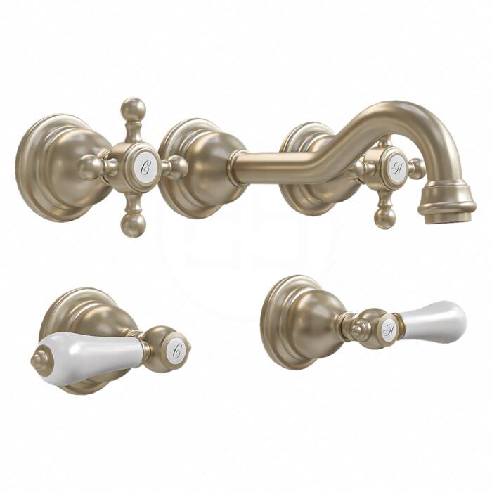 Antique Brass Bathroom Widespread Sink Faucet Wall Mount 3 Holes 2 Cross Knobs Brass Lavatory Basin Mixer Tap Mixing Spout Double Handles Commercial