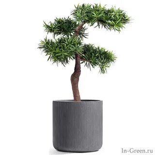 Подокарпус Бонсай искусственный Элит в кашпо дымчато-серый бетон | 100 см