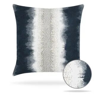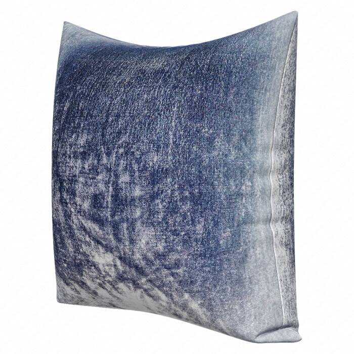 a blue and white pillow on a white background with an ombree effect in the middle