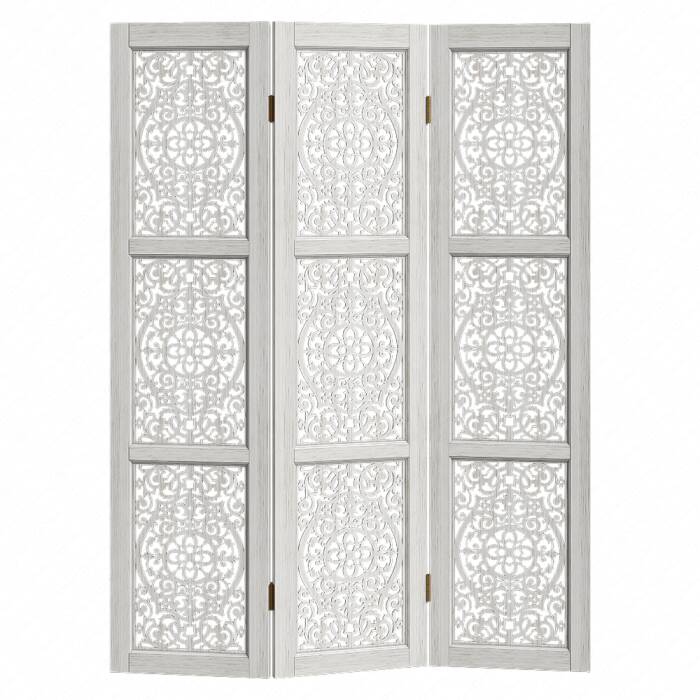 Día y Noche - Día y Noche Biombo 3 paneles tallado a mano madera de mango gris 120x165 cm – продажа товаров по низким ценам в каталоге товаров со всего мира.