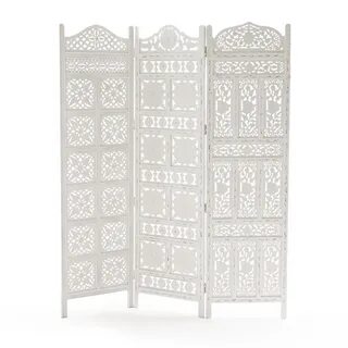Día y Noche - Día y Noche Biombo 3 paneles tallado a mano madera de mango gris 120x165 cm - купить по низким ценам в интернет-ма