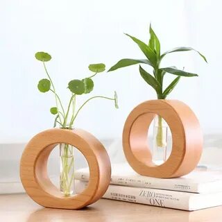 Nordic Desktop деревянный держатель цветочный горшок стеклянный стеклянный ваза с твердым деревом гидропоникой растения цветочные горшки с деревянной основой