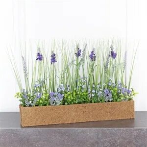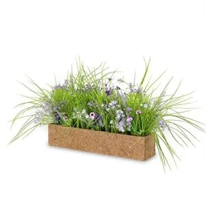 ТД085 Композиция искусственная Разнотравье с цветочками в кокосовом боксе 50х10хh10см, фиолет