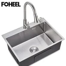 FOHEEL Одиночная кухонная раковина SUS304 кухонная раковина из нержавеющей стали с одним слотом раковина 50*45 см с сливной корзиной и сливной трубой - купить в интернет-магазине Overdoze: характеристики, фото и видеообзоры