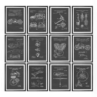 Винтажный автомобильный мотоцикл Патентный патентный плакат холст рисовать ретро -механическое строение стены