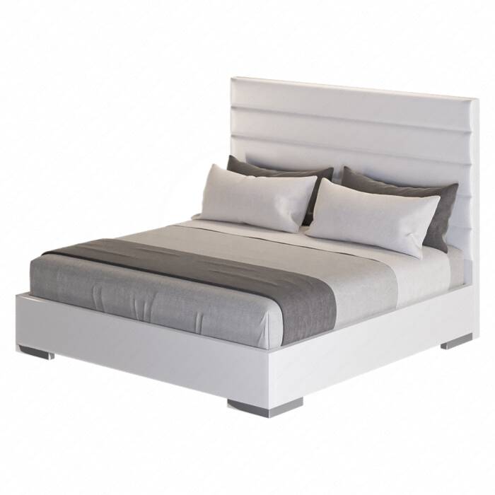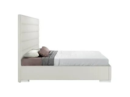 White Panel Tufted Leather Reina Platform Bed Zuri Furniture #furniturecollection Princes bed, White bedding, Upholster design
