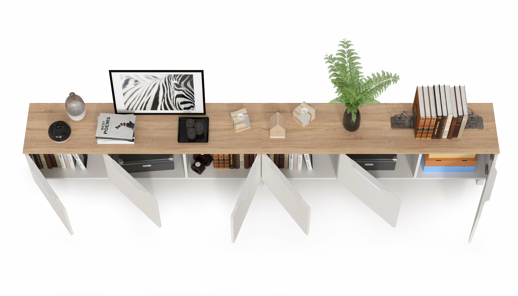 Две тумбы под ТВ 13.267.01, цвет белый шагрень/дуб сонома, ШхГхВ 276,8х34,9х43,8 см, универсальная сборка — купить сегодня c доставкой и гарантией по выгодной цене.