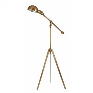 a wooden tripod floor lamp with a metal shade on it's head and legs