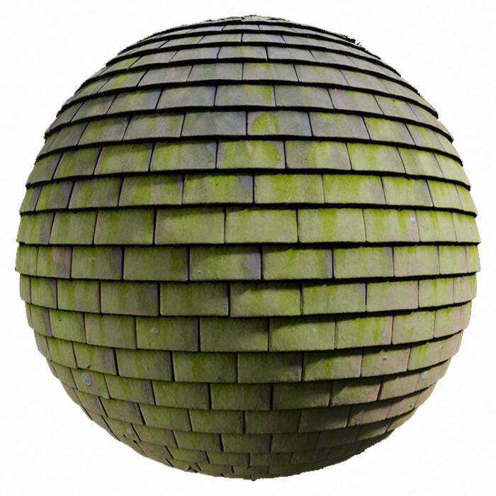 текстура, pbr, Старая, позеленевшая черепица, Крыша, черепица, скачать, бесплатно