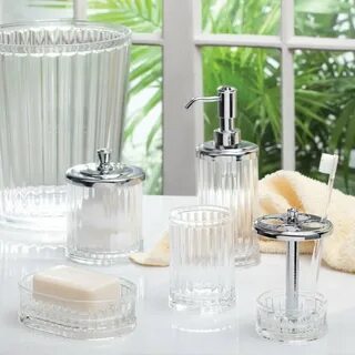 Frontgate Resort Collection Bath Accessories with Glass & Chrome-Finished Brass Bathroom decor, Luxury home decor, Vintage industrial decor