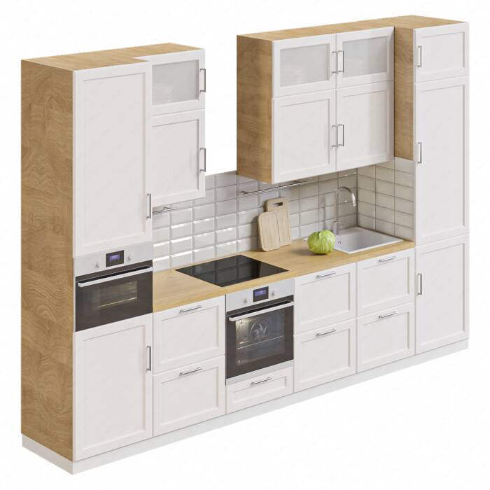 3d модель Кухня прямая белая с деревом 136616 в 2025 г Кухня, Интерьер, Белье