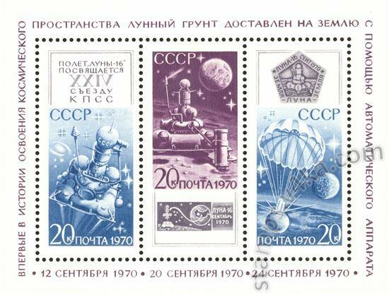 Блок СССР 1970 Космос Советская автоматическая станция Луна 16
