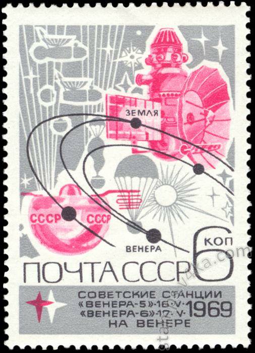 СССР 1969 Освоение космоса. Космос. Венера-5. Венера-6. Марка (Сол. 3821) MLH