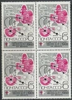 СССР 1969 год. Советские автоматические межпланетные станции и их орбиты, квартблок (6к) (3744