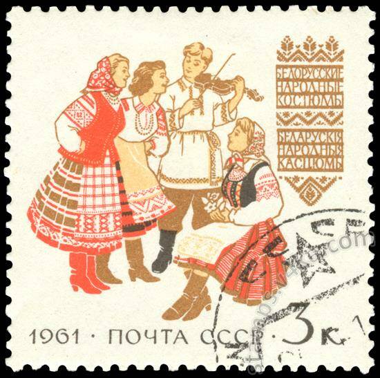 СССР почтовая марка № 2524 1961 г. Народные костюмы СССР Белорусские костюмы гашеная клей (торги завершены #288029739)