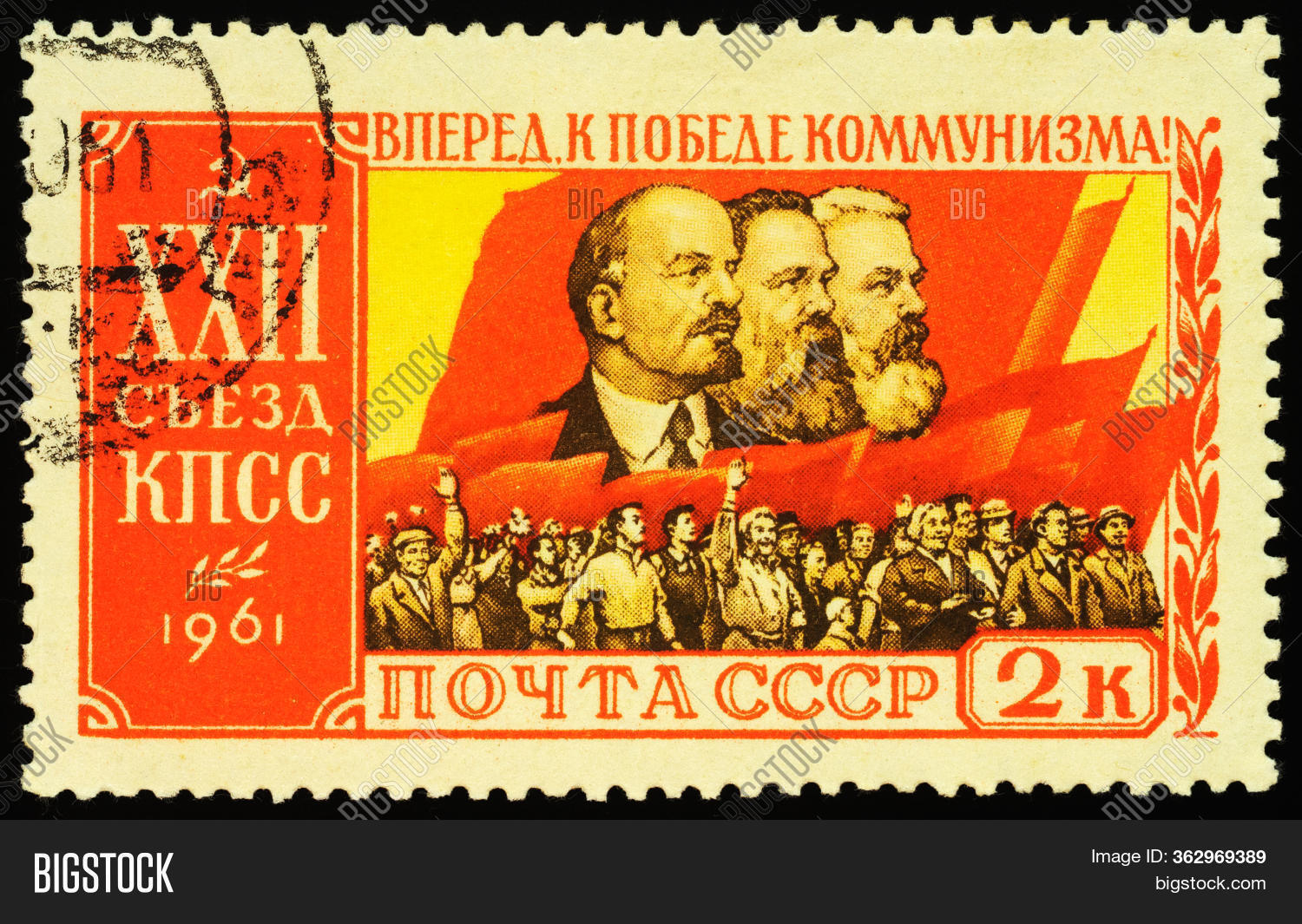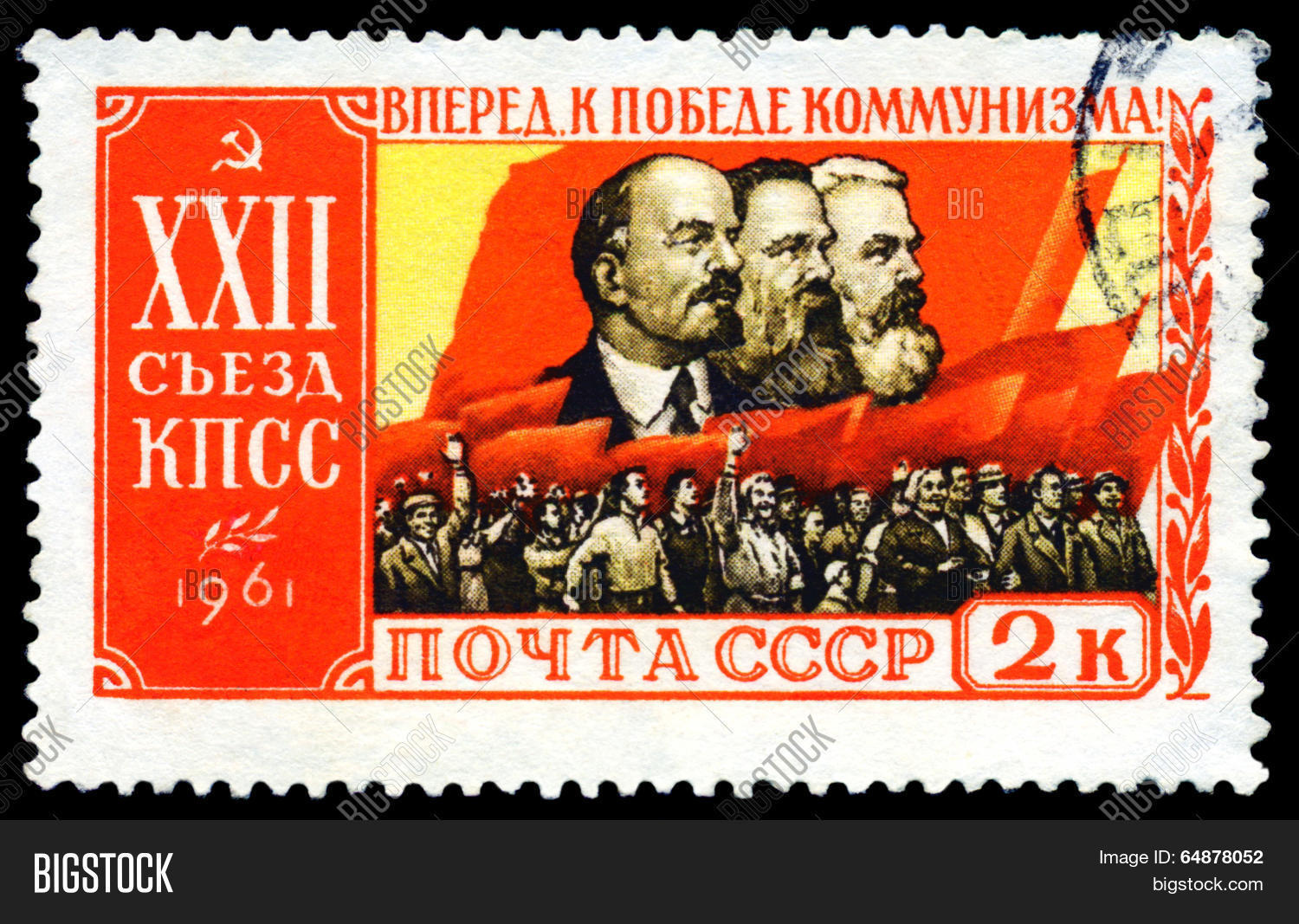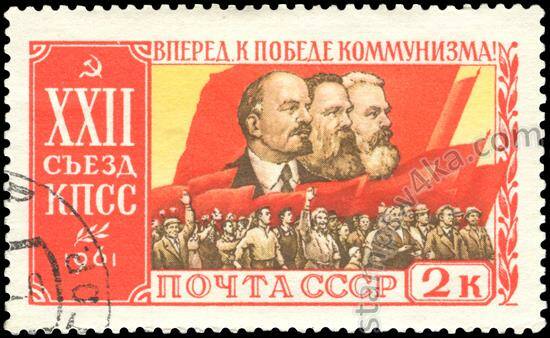 СССР 1961. XXII cъезд КПСС. Портреты К. Маркса, Ф. Энгельса, В.И. Ленина. Z 2533 Сол 2619