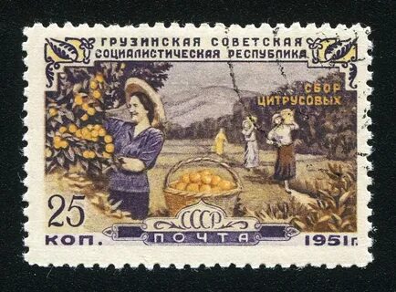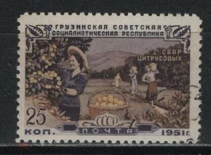 1951. 30 лет Грузинской ССР. Сбор цитрусовых. 25 к.