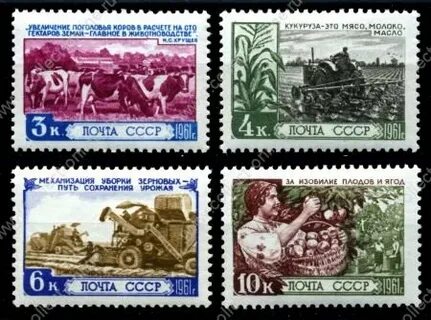 СССР 1961 г. • Сол# 2540-3 • Развитие сельского хозяйства • полн. серия • MH OG XF