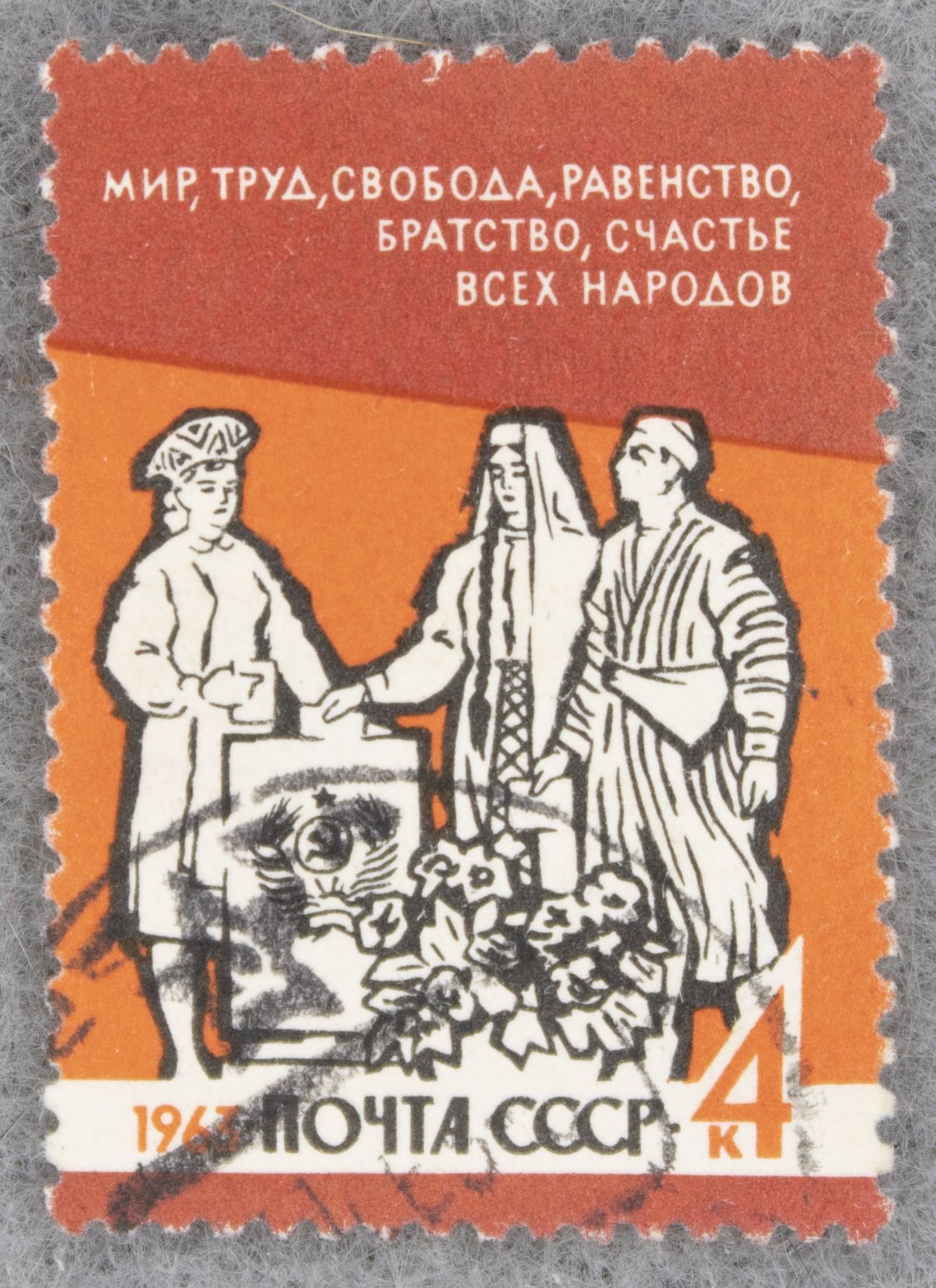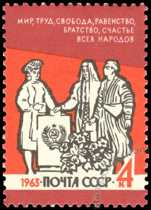 Файл:The Soviet Union 1963 CPA 2929 stamp (Proclaiming Peace, Labor, Liberty, Equality, Brotherhood and Happiness. 'Equality,' e