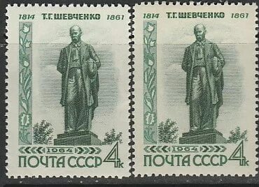 СССР 1964 год. 150 лет со дня рождения Т.Г. Шевченко, разновидность (белая и серая бумага)