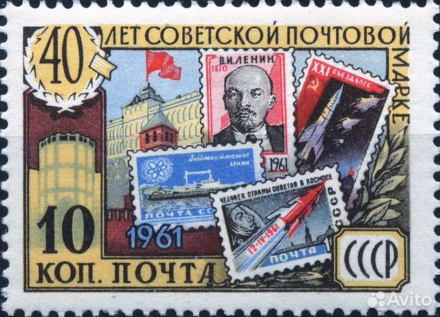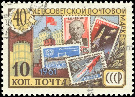 1961 2610 Ленинизм - знамя наших побед. 40 лет советской почтовой марке 10к