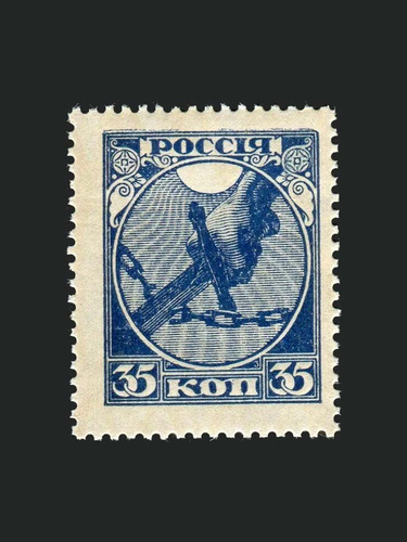 РСФСР 1918 год. Первый выпуск. Рука с мечом, разрубающая цепь. Квартблок. Разновидность - сдвиг изображения