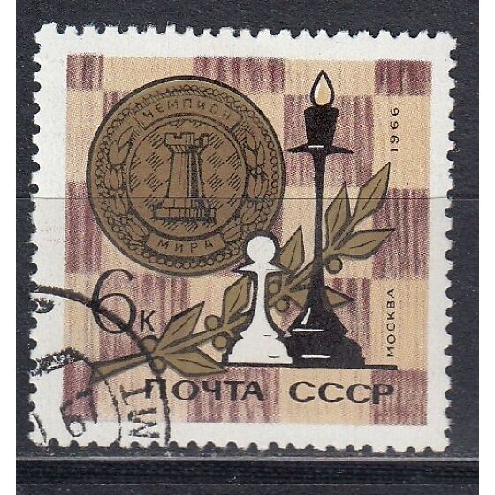 1966-044 Марка СССР Шахматы Спортивные чемпионаты и первенства мира III Θ