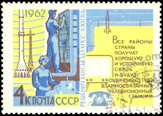 File:The Soviet Union 1962 CPA 2777 stamp (Decisions of the 22nd Communist Party Congress. Communications. Telephone installatio