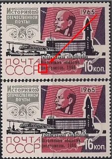 СССР 1966 год. Надпечатка "Учредительная конференция Всесоюзного общества филателистов" на марке 3177 (ном. 16к). Разновидность - короткая буква "ф" в надпечатке