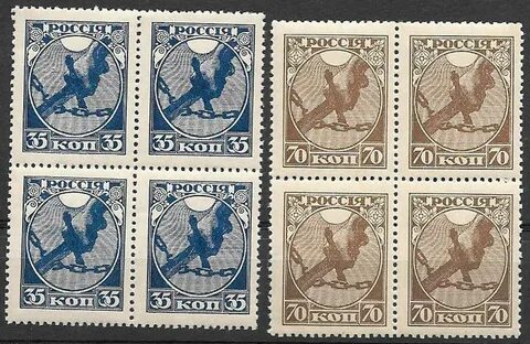 РСФСР, 1918 год, 35 и 70 коп., первый выпуск, квартблоки
