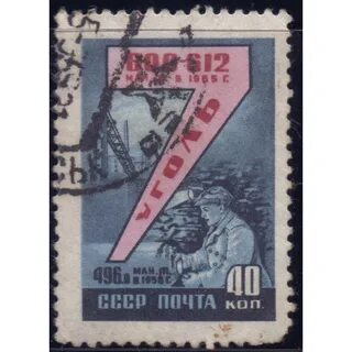 1959, август - март. Почтовая марка СССР. Семилетний план развития народного хозяйства СССР. 40 коп. Уголь