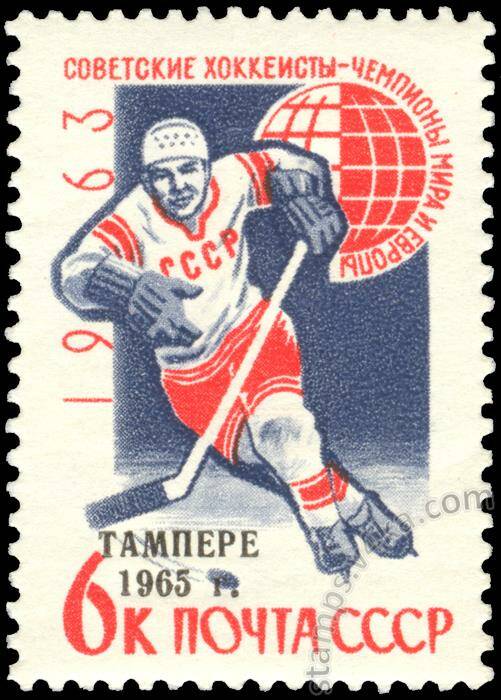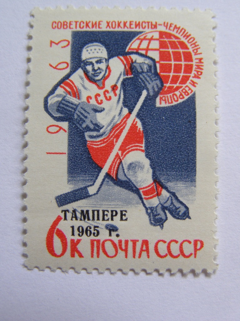 14644-2 / 3160 спорт Хоккей с шайбой Чемпионы мира надпечатка Тампере 1965 1 марка ** РАСПРОДАЖА.