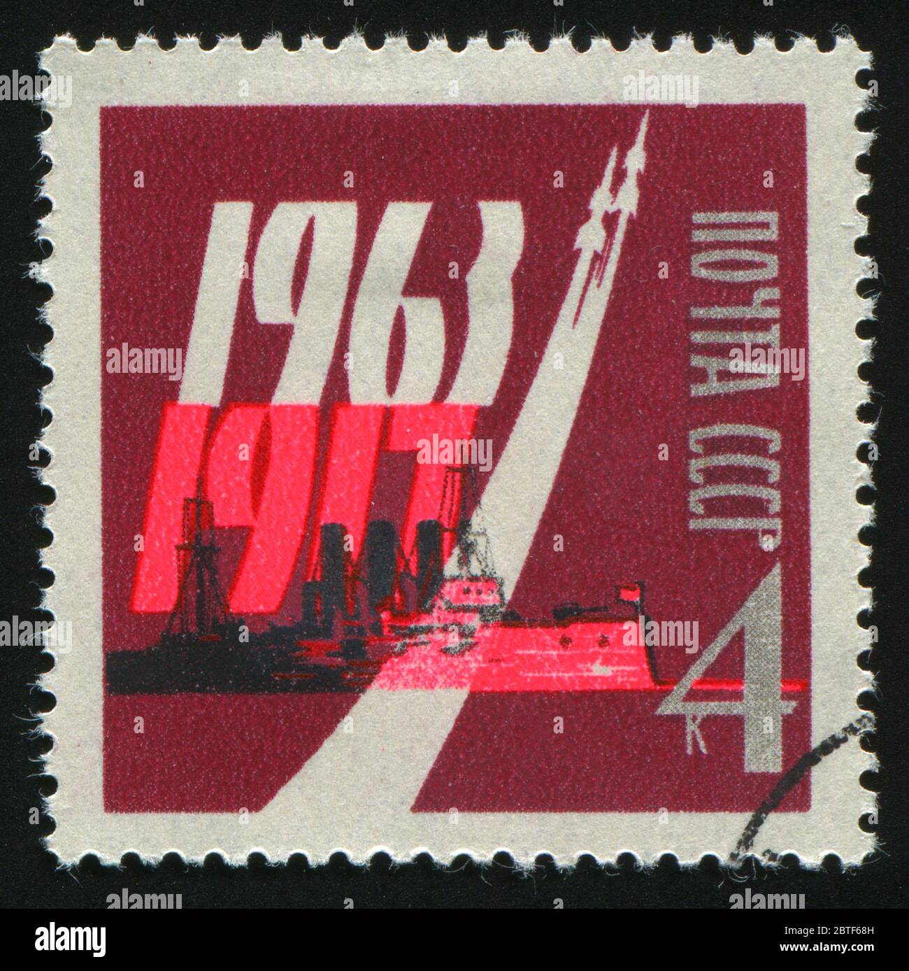 Postage stamp - 46th anniversary of the great October socialist revolution. Pink-scarlet 1963 - USSR