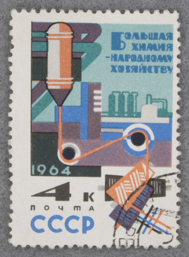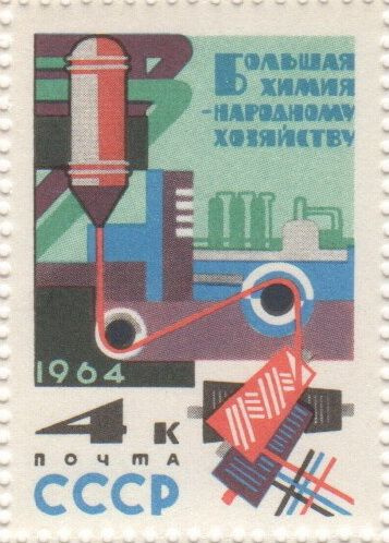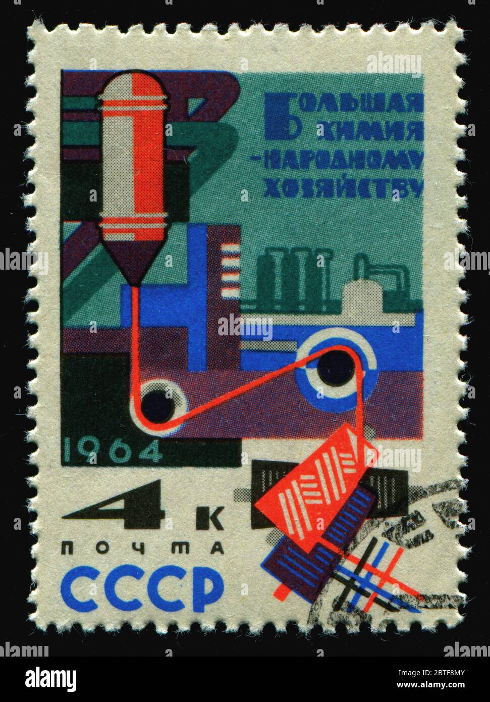 MOSCOW, RUSSIA - JUNE 26, 2017: A stamp printed in USSR Russia shows Chemical industry for agriculture, circa 1964