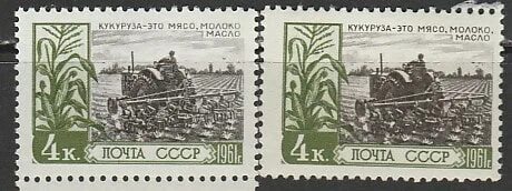 СССР 1961 год. Культивация посевов кукурузы (ном. 4 к). Разновидность - разный оттенок