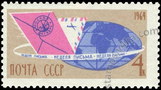 Файл:The Soviet Union 1964 CPA 3100 stamp (International Letter Writing Week. Letter, aerogram and globe).jpg - Википедия