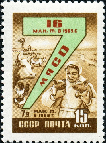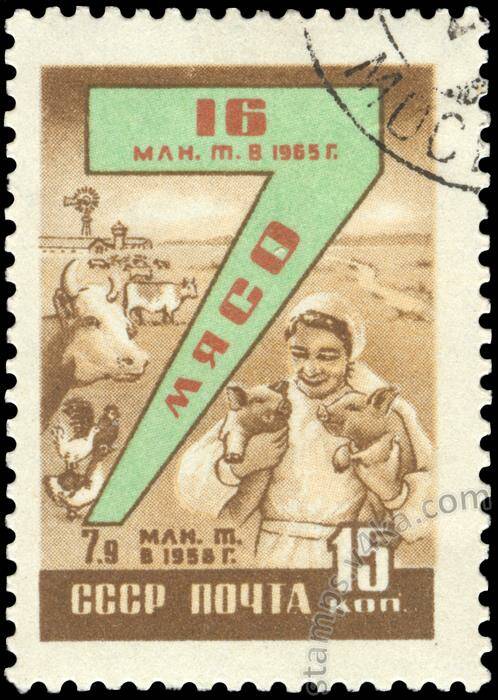 1959-073 Марка СССР Животноводство Семилетний план развития народного хозяйства I O