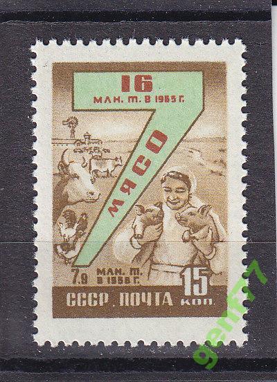 1959-073 Марка СССР Животноводство Семилетний план развития народного хозяйства I O, купить