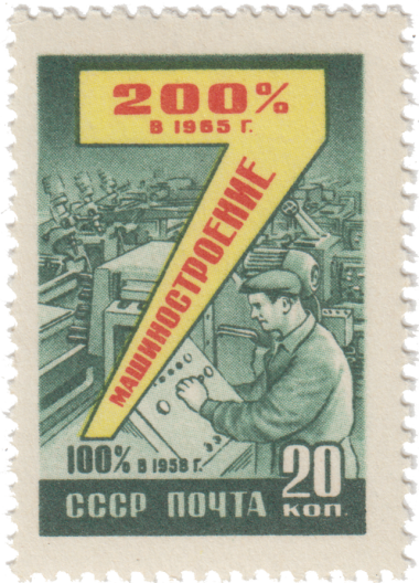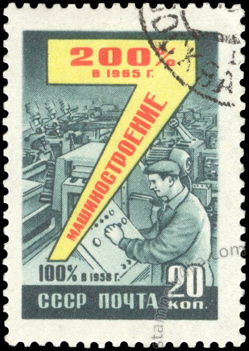 ltссср негашёная марка 1959 года выпуска из серии семилетний план номинал марки 20 копеек машиностроение 2344 скан образец gt ссср негашёная марка 195
