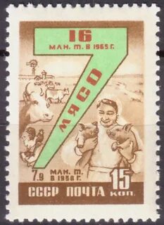 Марка почтовая. 1959 год, СССР. 15 копеек. Семилетний план. Мясо.