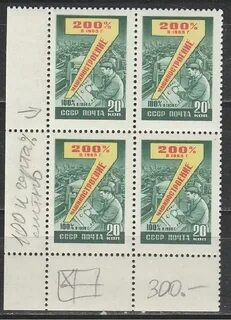 СССР 1959 год. Семилетний план развития машиностроения (2259). Квартблок. Разновидность - "хвост" в "%" (Ю)