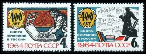СССР 1964 г. № 3006-3007. 400 лет книгопечатанию в России. Серия из 2 марок. MNH(**)