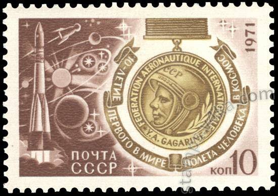 Марка «12 апреля-день космонавтики» 1971 год