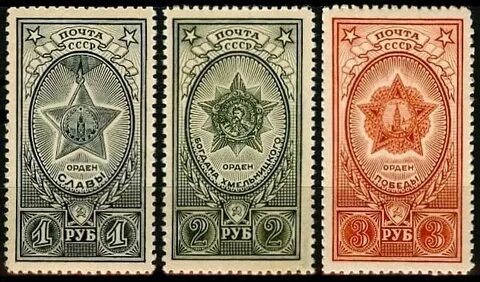 СССР 1945 г. № 0960-0962. Ордена. Серия из 3 марок. MNH(**)